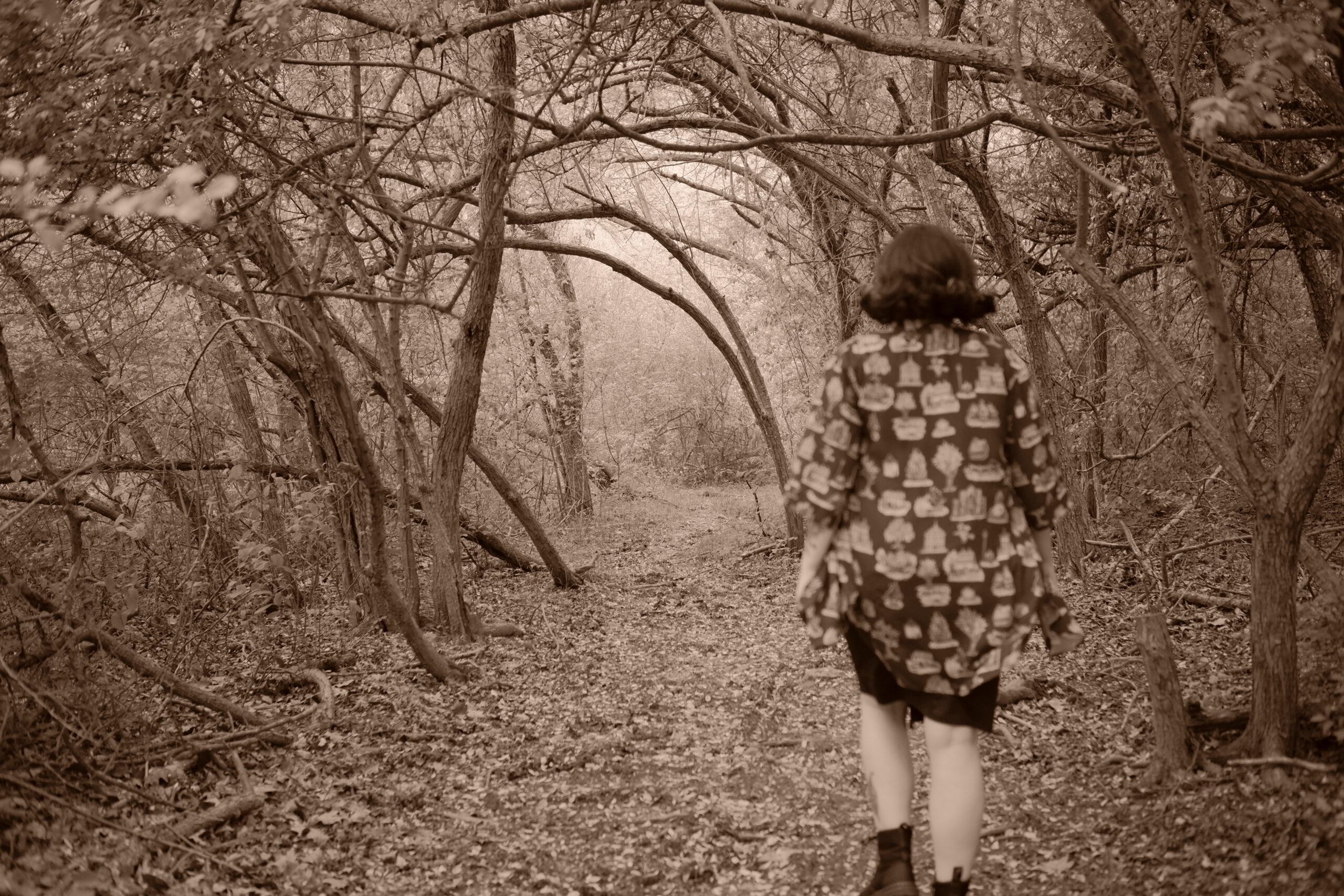 Moving through the paths in Salem, MA, a young woman marches ahead confidently. Her pace steady, excited for the next adventure. The trees form a gateway for her, having bent this way anticipating her path long ago.
